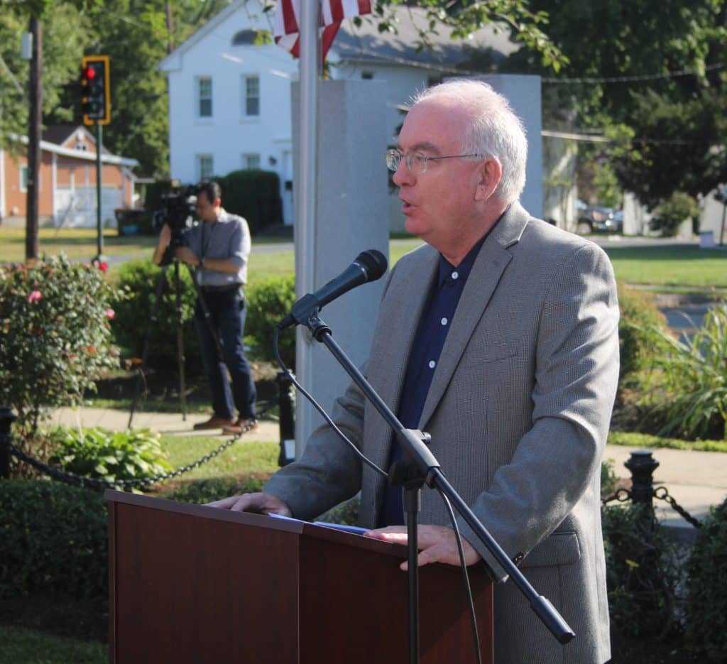 Johnson was one of four speakers at the Sept. 11 ceremony, which took place at Agawam Fire Department Headquarters on Main Street, facing the memorial sculpture in the form of the Twin Towers.