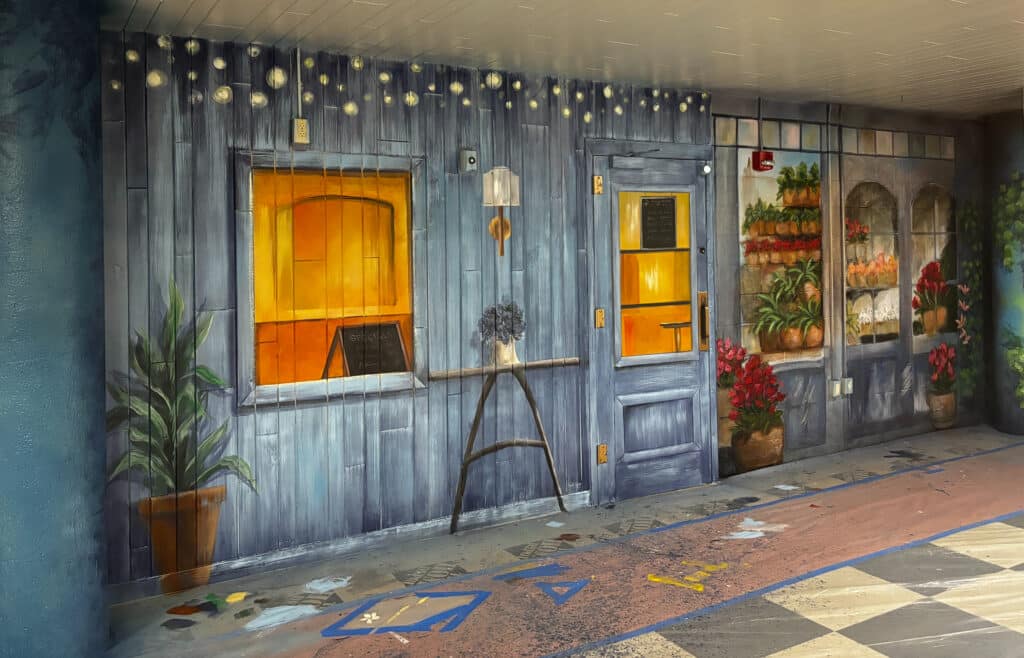 Turner said, “European cafe scenes offer whimsical, vibrant, welcoming vibes, which we thought would add so much to our space.” Turner met local artist/owner of Chapin Street Studios Jill Kovalchik many years ago and have followed her work via social media. Turner and Bishop felt that not only would Kovalchik do incredible artistic work bringing their vision to life, but with her personality and experiences in teaching, she would also be a wonderful resource for their own students who have an interest in art. “Weaving Pathfinder Tech students into this project was absolutely part of the overall vision,” Turner added.