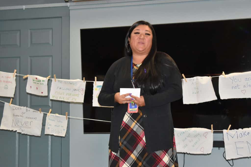 HUNTINGTON — The annual Hilltown Domestic Violence Awareness Vigil was observed inside Stanton Hall on Oct. 16. As community members entered, they were encouraged to sign a banner and write a message on a prayer flag to victims of domestic violence, which were then attached to clotheslines across the stage.