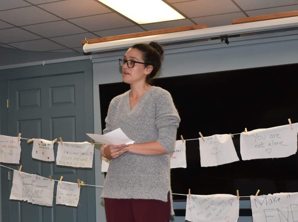“I’m here to honor the victims,” she said, naming five. She said statistically everyone in the room is connected to more than one survivor.  Last year, Hilltown Safety at Home served 95 people in cases of assault, domestic violence, sexual assault, elder abuse, financial abuse and human trafficking.