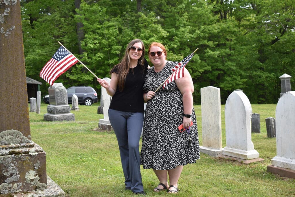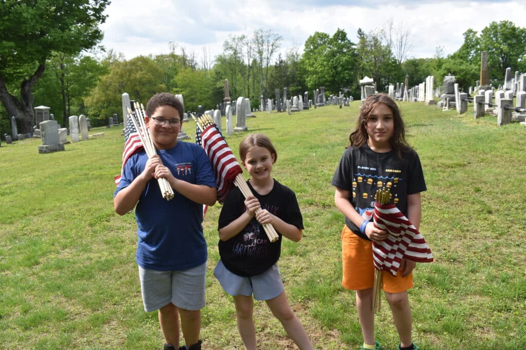 BLANDFORD — On May 21, Chester Elementary School Principal Vanna Maffucio and fourth grade teacher Mikayla Menin invited the fourth grade students and their families to meet after school at Center Cemetery in Blandford, across from the Blandford Fairgrounds, to replace the flags on graves of local veterans.